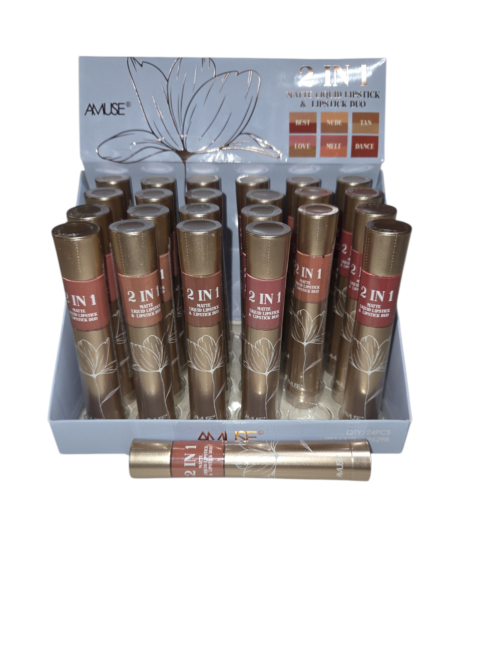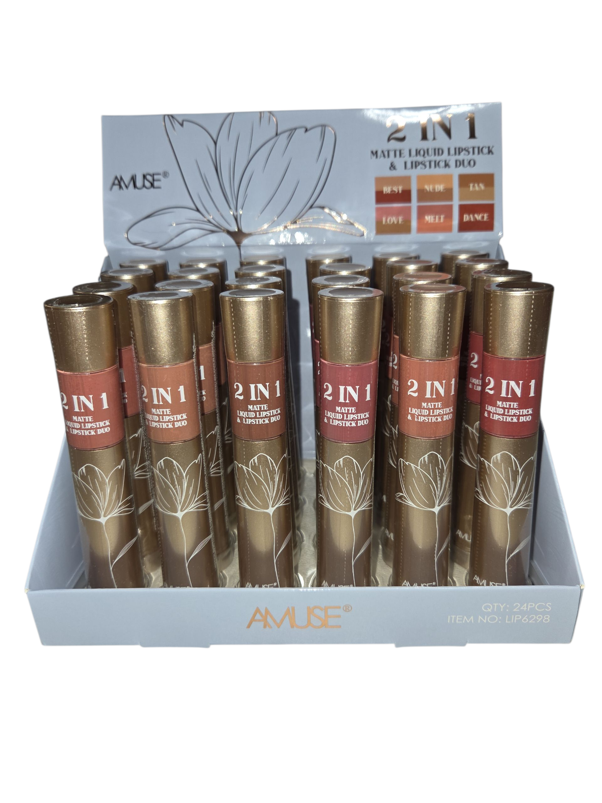 Discover the allure of our new Amuse Duo Lipstick and Lip Gloss, available in six stunning matte shades. Elevate your look and express your unique style with these captivating colors! shades. Elevate your look and express your unique style with these captivating colors!